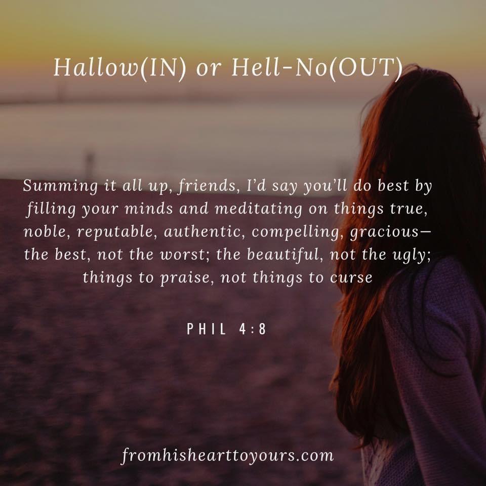 How do you handle Halloween with young and not so young minds ? The below verse was my foundation from the Word that I shared with my daughter on why as a Christian we choose not to follow or celebrate or part take in anything Halloween.
