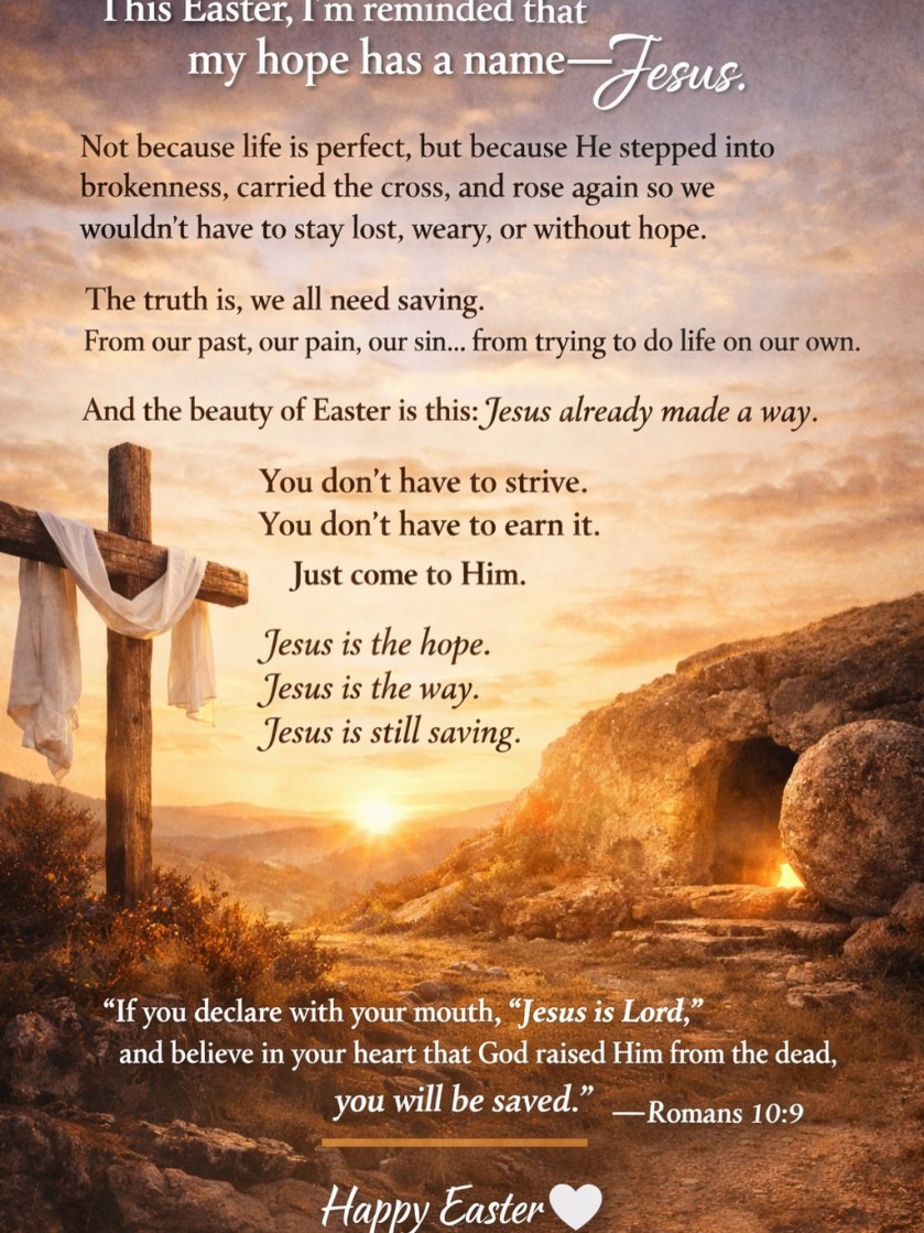 Not because life is perfect, but because He stepped into brokenness, carried the cross, and rose again so we wouldn’t have to stay lost, weary, or without hope.