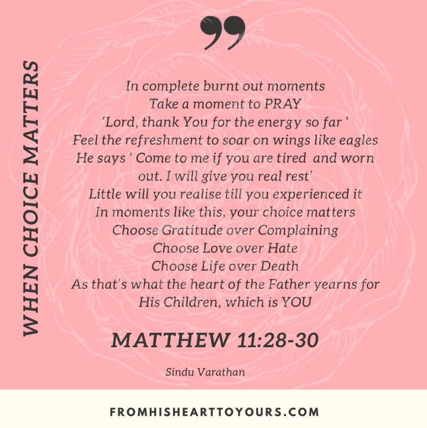 Experiencing a burnt out moment right now ? At some stage all of us go through that phase in our lives. Let’s check what the Word of God has to say about burnt outs and the best solution to tackle those gloomy moments